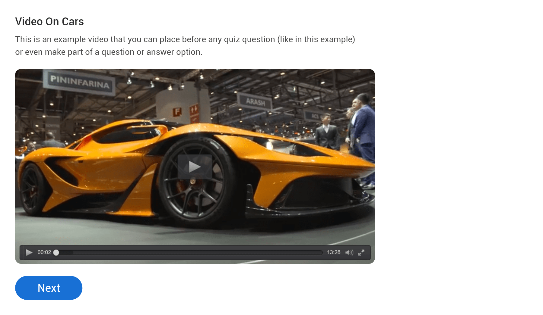 By adding a video or audio track to your questions, you can create questions like “Identify the animal in this video” or “Which Prime Minister’s voice has been captured in this audio?”