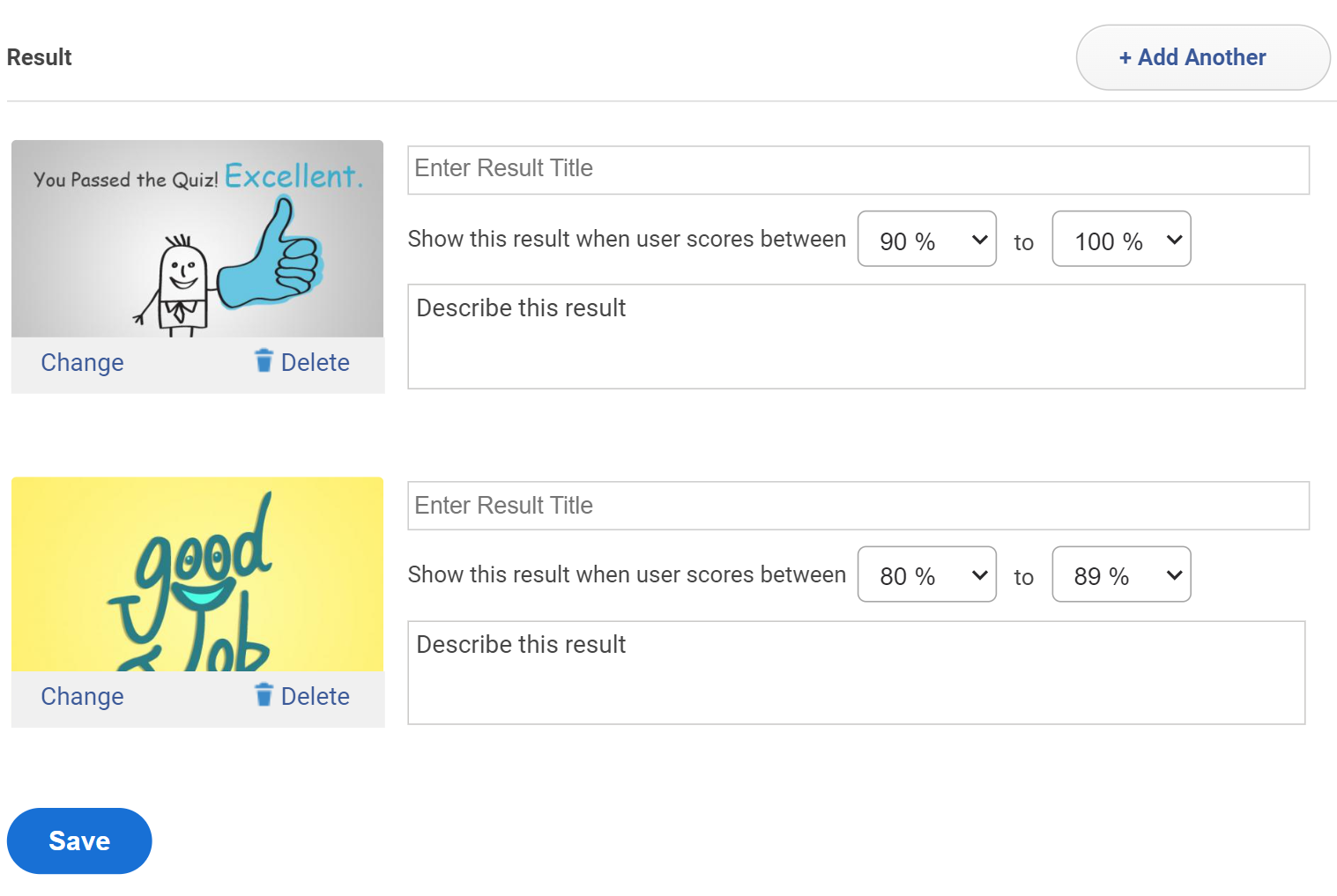 So, when you create tests in an online test maker, you can customize test results based on learners’ scores or grades like “good work,” “excellent work, keep it up,” “revise & attempt again,” etc. These will be displayed to the learners at the end of their quizzes.